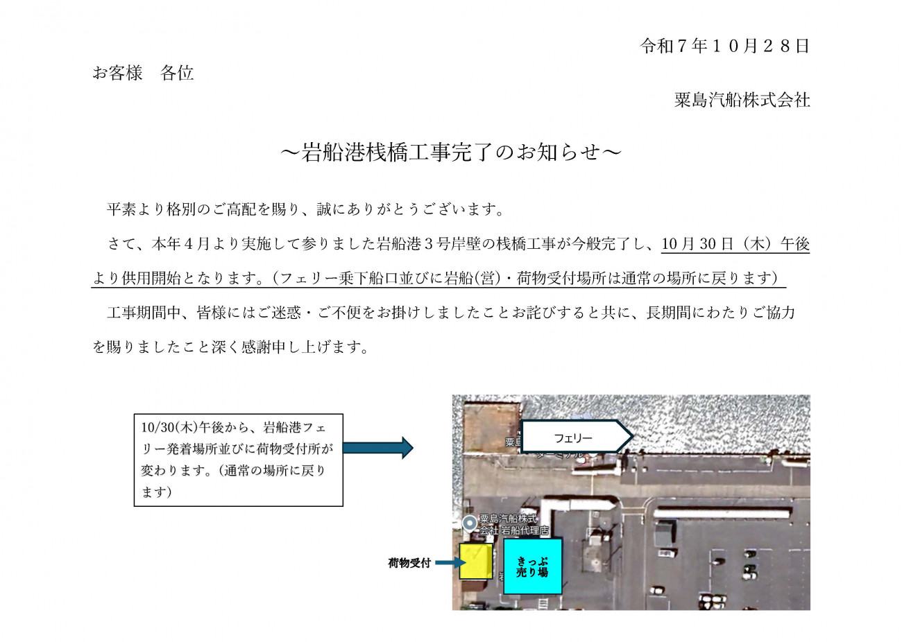 - 2025/10/28|岩船桟橋工事完了のお知らせ
